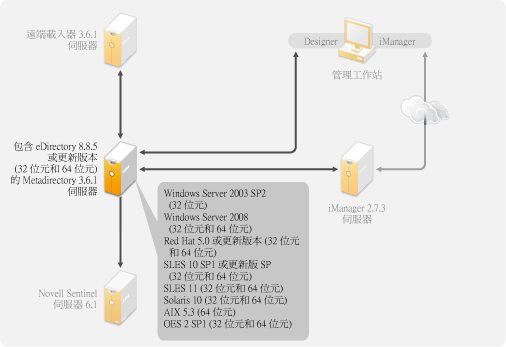 圖 6-3 Metadirectory 伺服器支援的作業系統