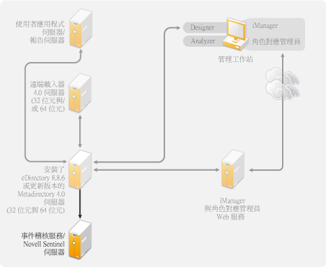 Identity Reporting 模組是 Identity Manager Advanced Edition 的元件。Novell Sentinel 是可新增至 Identity Manager 系統的選擇性元件,但它並不隨附於 Identity Manager 中。