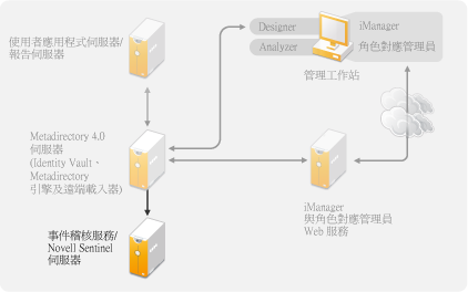 Identity Reporting 模組及 Novell Sentinel 是兩個不同的工具,都用來收集關於 Identity Manager 的稽核及報告資訊。