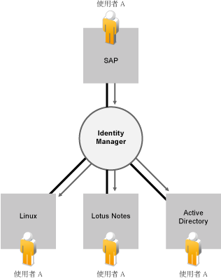 圖 1-2 連接多種系統的 Identity Manager