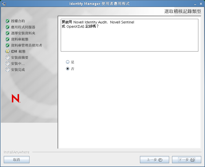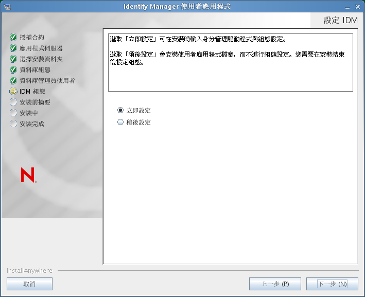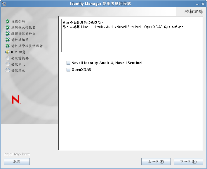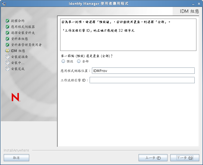 Identity_Manager_User_Application_Installlog.log 中保留基本安裝工作的結果。