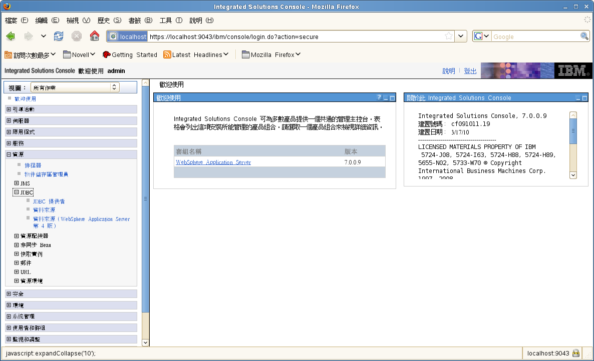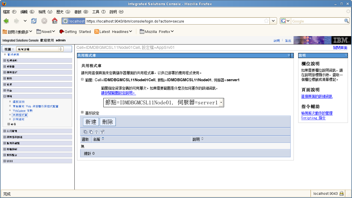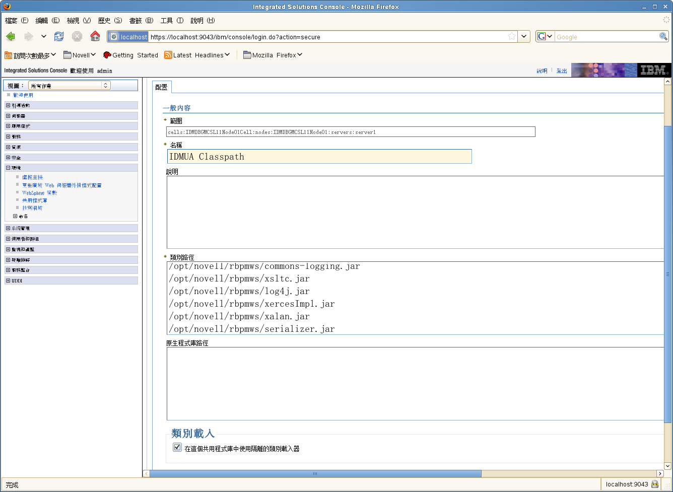 將路徑設定到 JVM 系統內容中的 sys-configuration-xmldata.xml 檔案。以 admin 使用者身分登入 WebSphere 管理主控台。