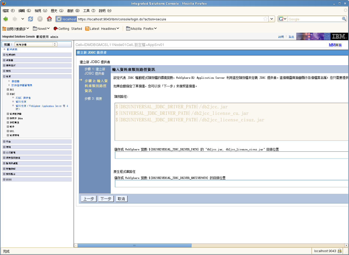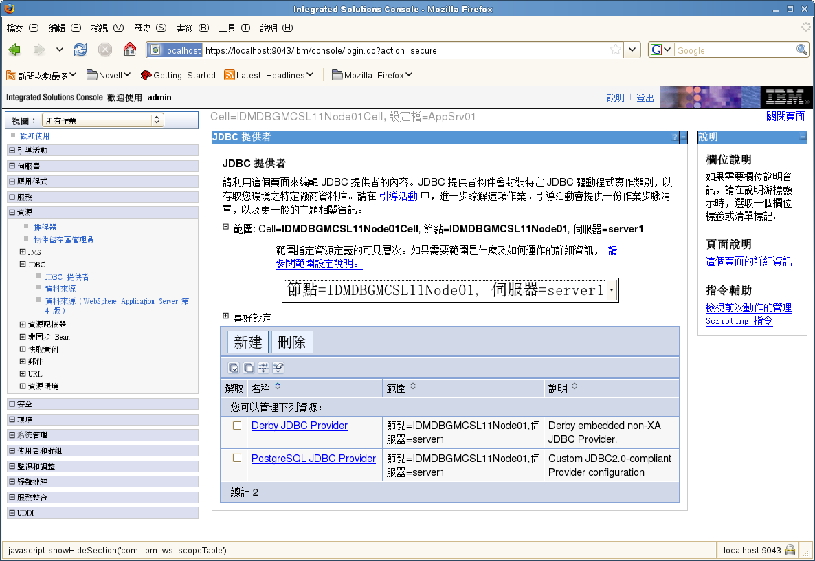 若要設定連接池以與 WebSphere 搭配使用,您需要建立 JDBC 提供者以及資料來源。本節提供有關建立提供者和資料來源的指示。