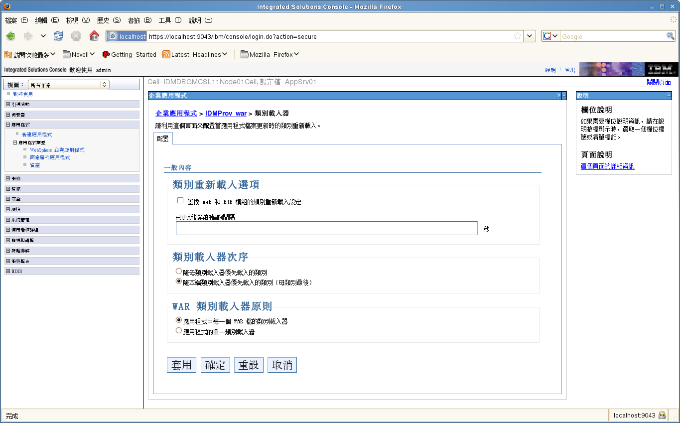 請注意,類別載入變更應在應用程式層級而非模組層級執行。WebSphere 會為已部署的 WAR 建立一個 EAR,並將該 WAR 做為 EAR 中的一個模組︰