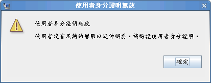 如果使用者身分證明無效,或者使用者不具備必要權限,則安裝程式會顯示出錯螢幕: