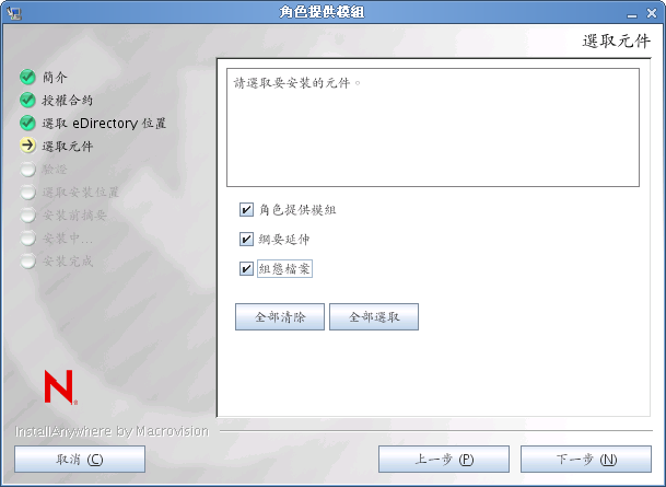 選取要安裝的元件,然後按一下「」。一般情況下,可以安裝所有元件。