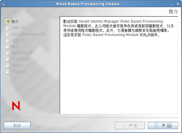 安裝程式會顯示「簡介」螢幕。