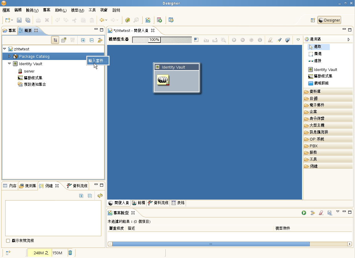 在 Designer 中建立新的 Identity Manager 專案之後,選取「」,然後按一下「」。