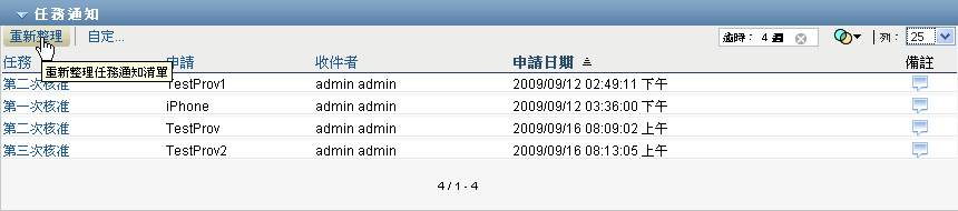當您修改任務清單的排序順序後,該優先設定會和您的其他使用者優先設定一起儲存在 Identity Vault 中。