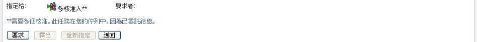 如果核准類型為「多核准人」,則表示任務被指定給數個收件人,而所有收件人都必須要求並核准任務。