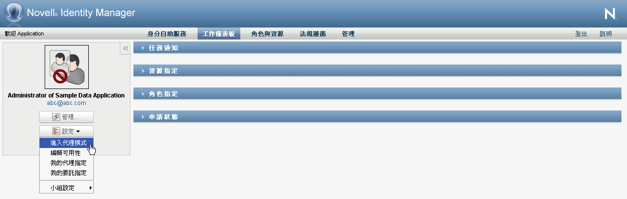 在「工作儀表板」的「使用者設定檔」區段中,按一下「」動作群組中的「」。