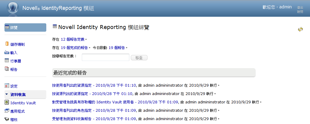 若要從使用者應用程式存取 Identity Reporting 模組︰