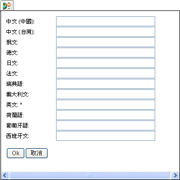 當地語系化。 顯示一個對話方塊,可讓您使用「使用者應用程式」目前支援的任何地區設定輸入通常用做欄位名稱或描述的文字。