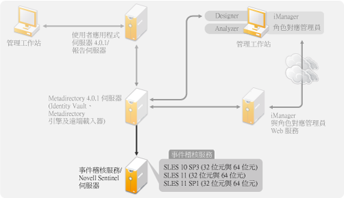 Identity Reporting 模組及 Novell Sentinel 是兩個不同的工具,都用來收集關於 Identity Manager 的稽核及報告資訊。