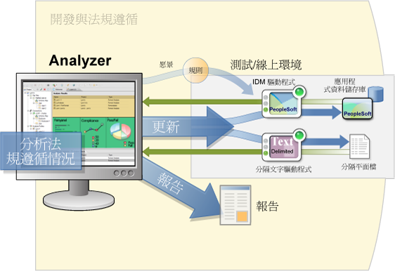 Analyzer 是基於 Eclipse 的身分管理工具集,可提供資料分析、資料清理、資料重整及資料監控與報告,協助您確保內部資料品質規則得以遵循。Analyzer 可讓您分析、增強及控制企業中的所有資料儲存。