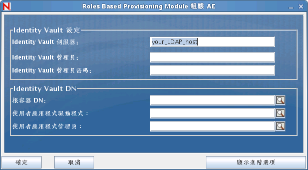 「Roles Based Provisioning Module 組態」面板的預設檢視窗會顯示下列六個欄位: