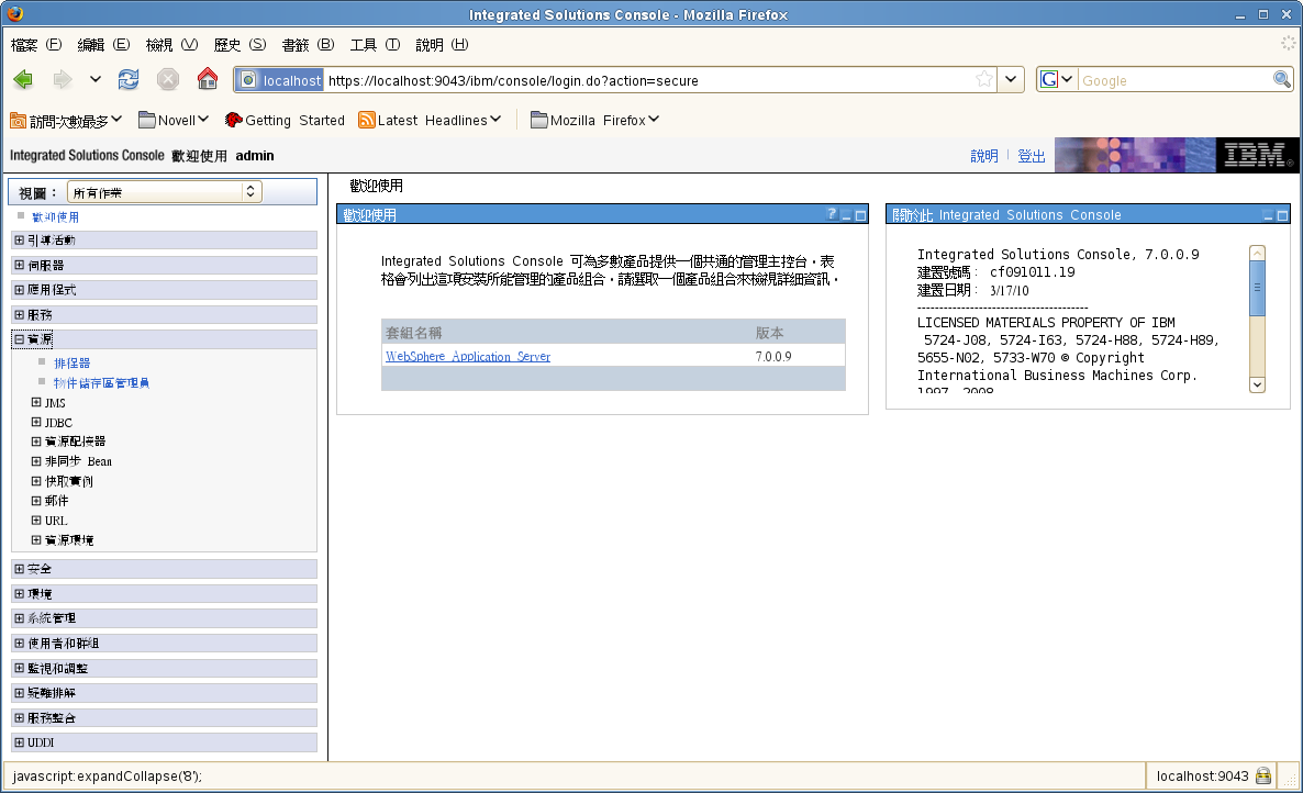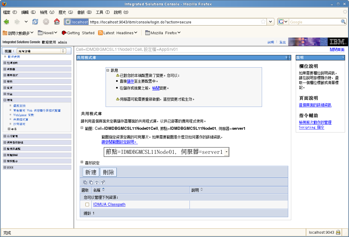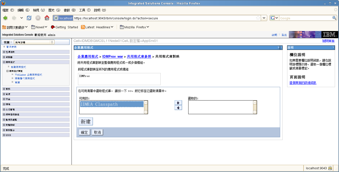 將路徑設定到 JVM 系統內容中的 sys-configuration-xmldata.xml 檔案。以 admin 使用者身分登入 WebSphere 管理主控台。