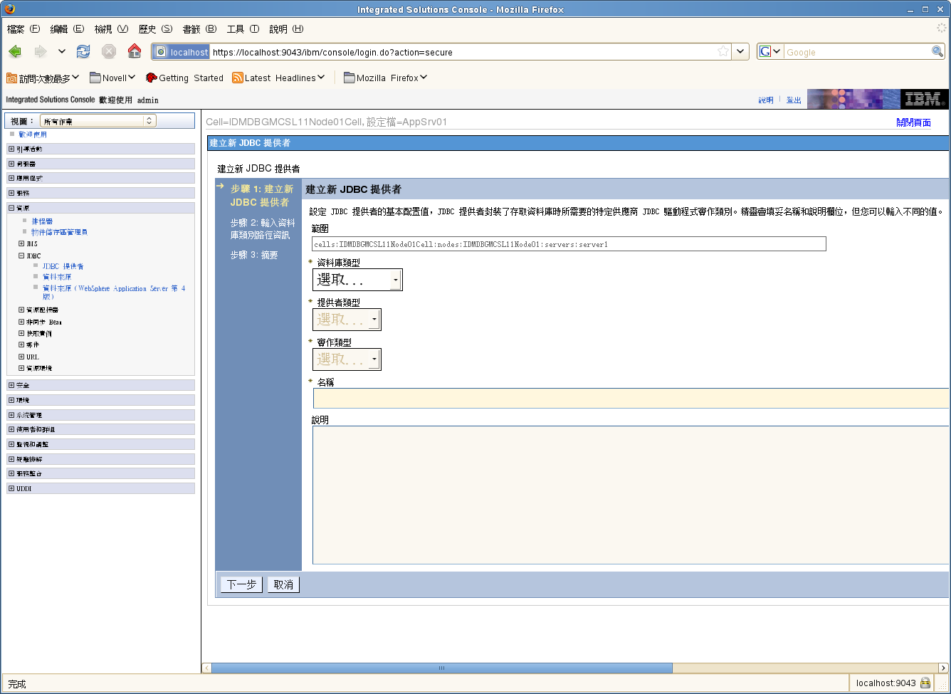 若要設定連接池以與 WebSphere 搭配使用,您需要建立 JDBC 提供者以及資料來源。本節提供有關建立提供者和資料來源的指示。