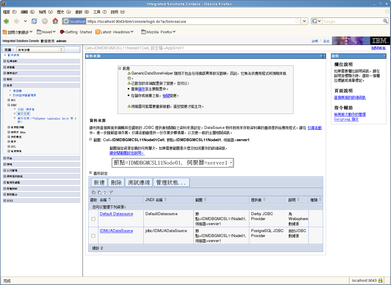 輸入資料來源名稱和 JNDI 名稱 (例如,對兩者均輸入 IDMUADataSource)。