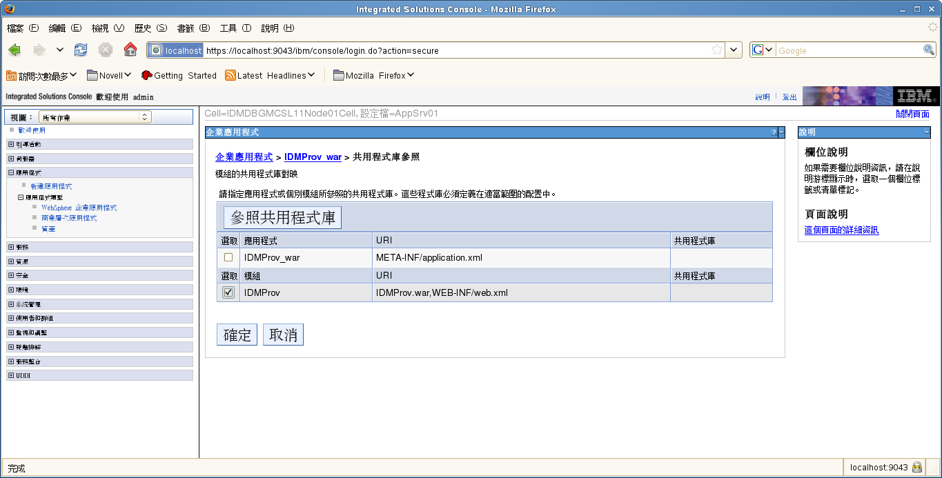 按一下「」(而不是 IDMProv_war) 旁邊的核取方塊。