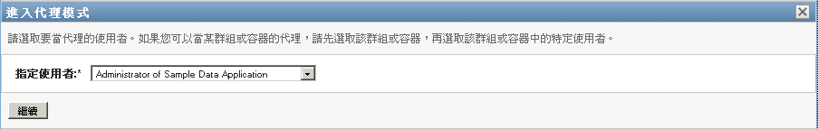 如果您未被授權充當其他使用者的代理,則使用者應用程式會顯示以下訊息: