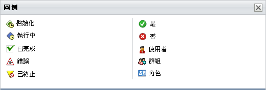 圖例可提供「」索引標籤中所使用之所有圖示的簡短描述。下圖顯示了該圖例。