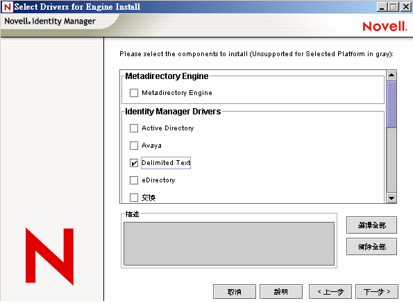 在安裝 Metadirectory 引擎的同時,可以安裝 Identity Manager Driver for eDirectory Shim (與其他的 Identity Manager 驅動程式一併安裝)。