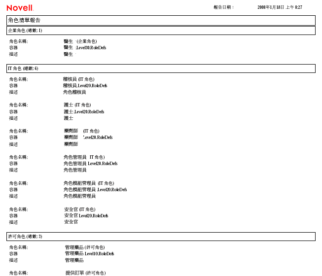 圖 18-1 角色清單報告範例