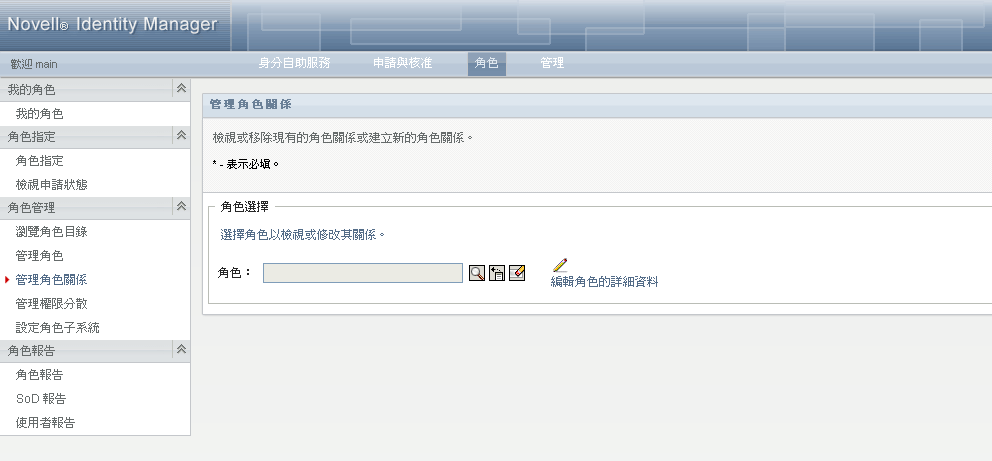 提示:「」連結提供了快速存取「」頁面的途徑。如果您選取了某個角色,該頁面就會顯示所選角色的內容以供編輯。