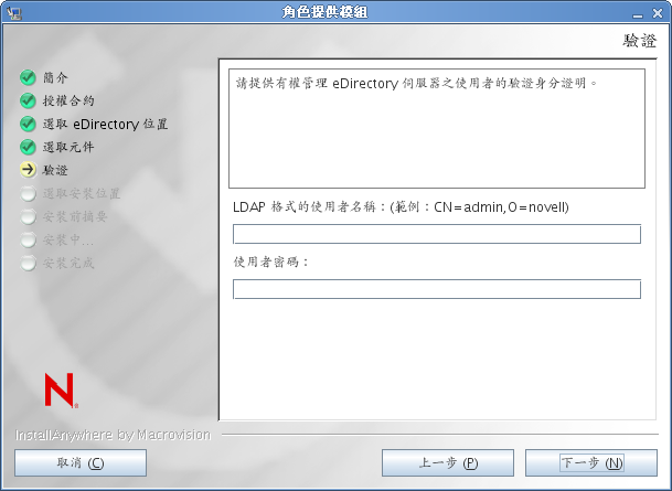 提供 LDAP 格式的使用者名稱,並輸入密碼: