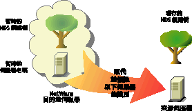 等來源伺服器的檔案系統和 NDS 資料庫移轉到目的伺服器後,來源伺服器會自動關機,目的伺服器會重新開機,並接替來源伺服器在現存網路上的名稱和身份。