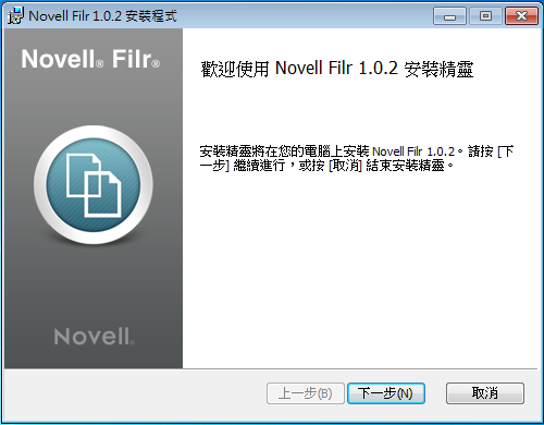下載完成後,請根據您使用的是 32 位元或 64 位元作業系統,開啟 NovellFilrSetup-x86.exe 檔案或 NovellFilrSetup-x64.exe 檔案。