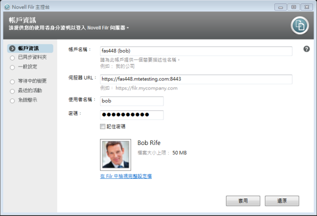 14.0 變更 Filr 桌面應用程式的 Filr 帳戶資訊