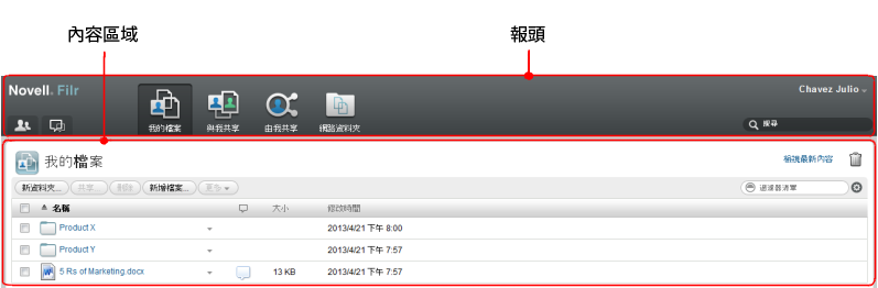 4.0 瞭解 Novell Filr Web 介面及其功能
