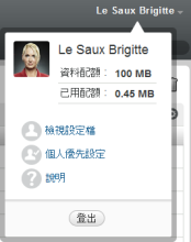 名稱連結: 在任一 Filr 頁面的右上角按一下連結名稱,以檢視下列選項:
