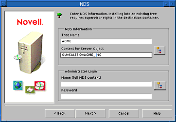 If you have created a new NDS tree, a user (default name ADMIN) with Supervisor rights to the NDS tree will be created in the same NDS container as the NetWare Server object.