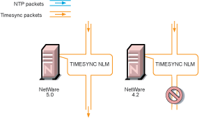 幸好在 NetWare 5.1 及更新版本中的 TIMESYNC NLM 可以取用和提供 Timesync 封包。而且 XNTPD NLM 可以在需要時提供 Timesync 封包。