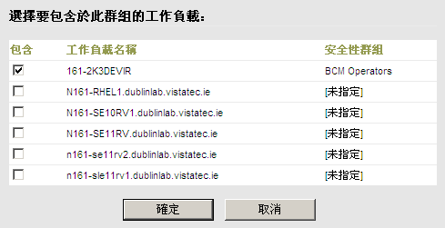 只有此安全性群組中的使用者才會有權存取選定的工作負載。