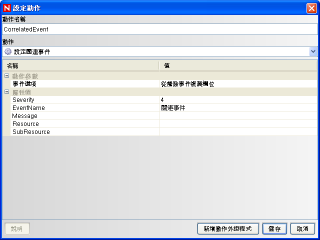 指定動作名稱,例如「關連事件動作」。