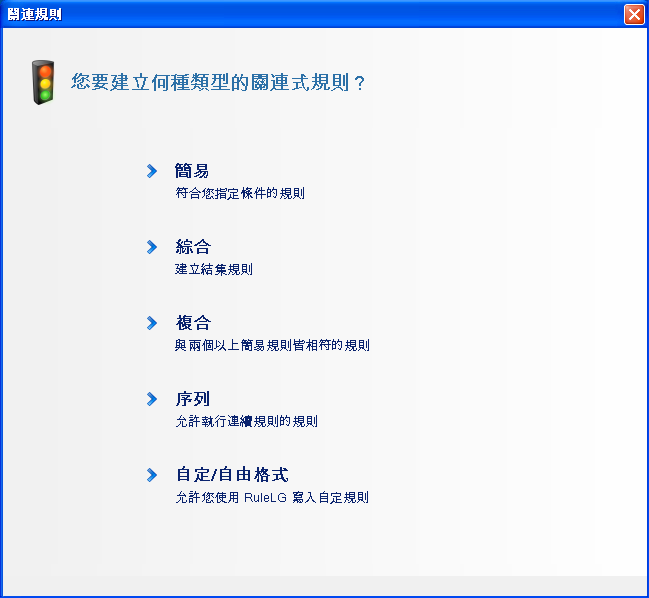 按一下。「關連規則精靈」即會顯示。