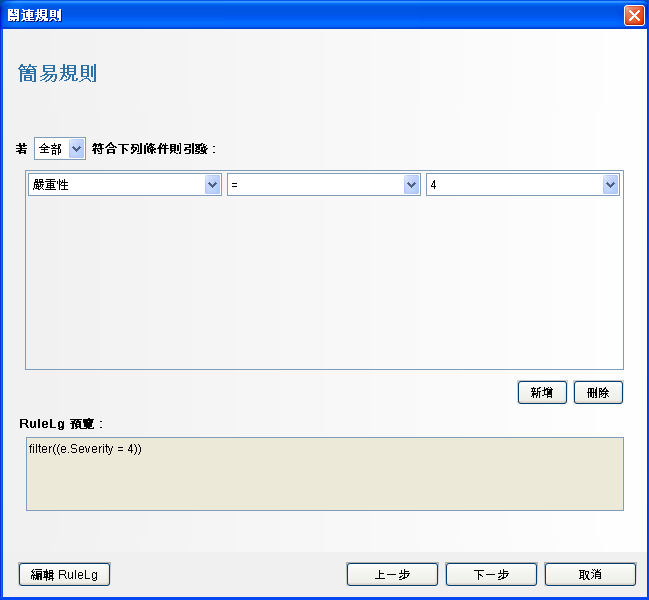 使用下拉式功能表將準則設為「嚴重性 = 4」,然後按。「更新準則」視窗即會顯示。
