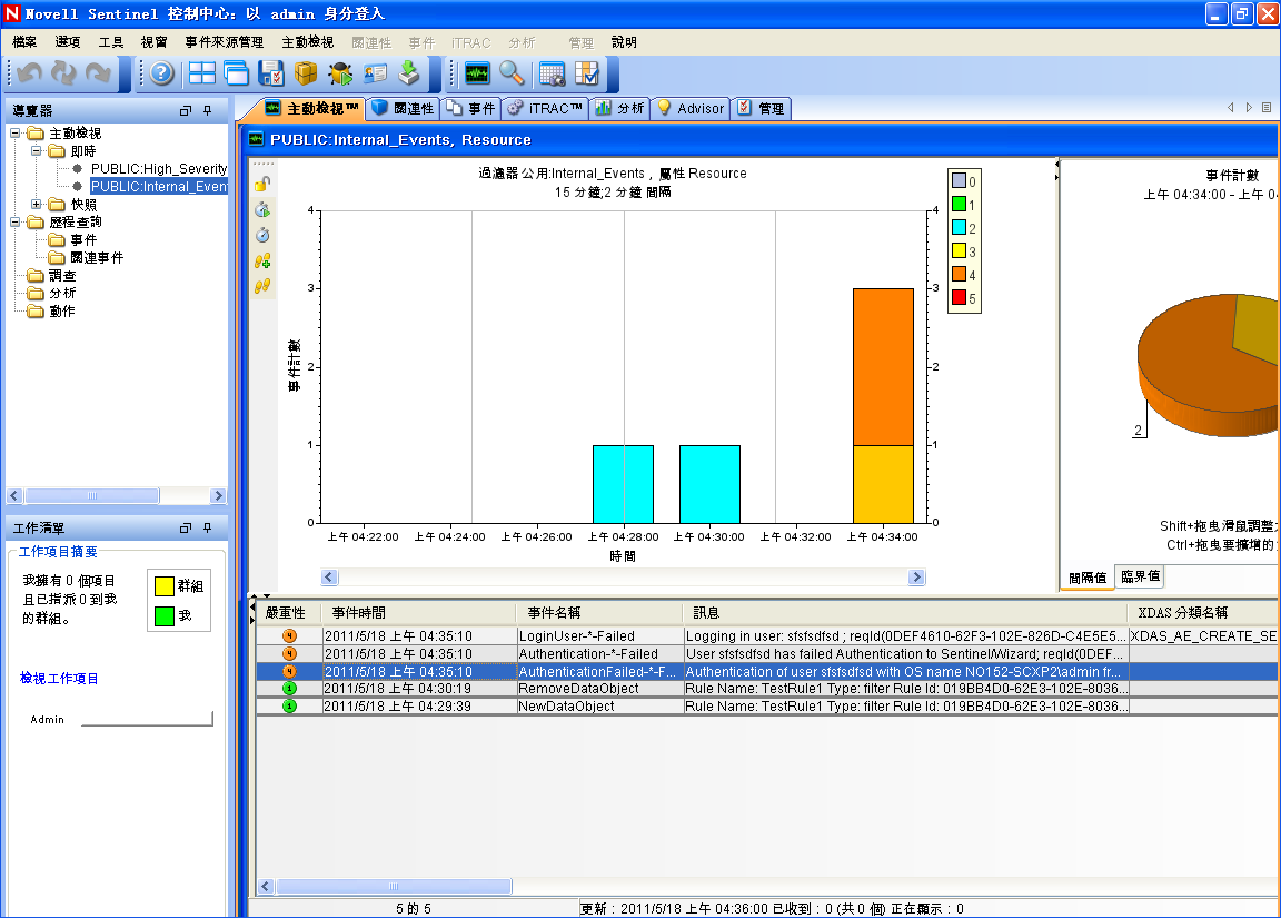 Sentinel 控制中心隨即開啟並顯示索引標籤,此索引標籤顯示以公用過濾器與所過濾的事件。