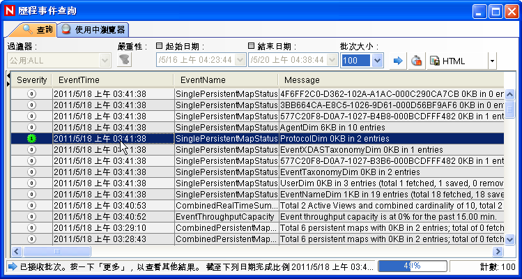 按一下工具列上的按鈕。「歷程事件查詢」視窗即會顯示。