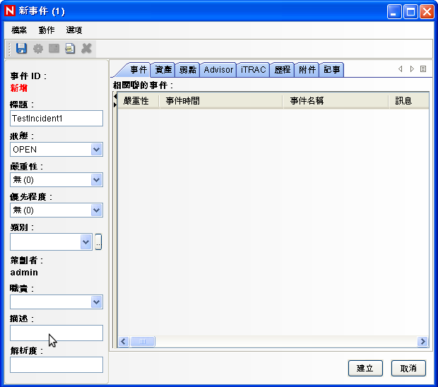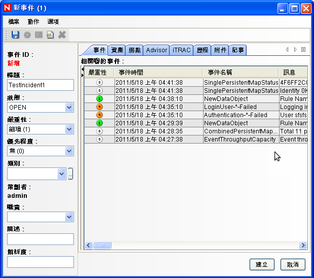 將事件命名為 TestIncident1,然後按一下。顯示成功通知後,按一下。