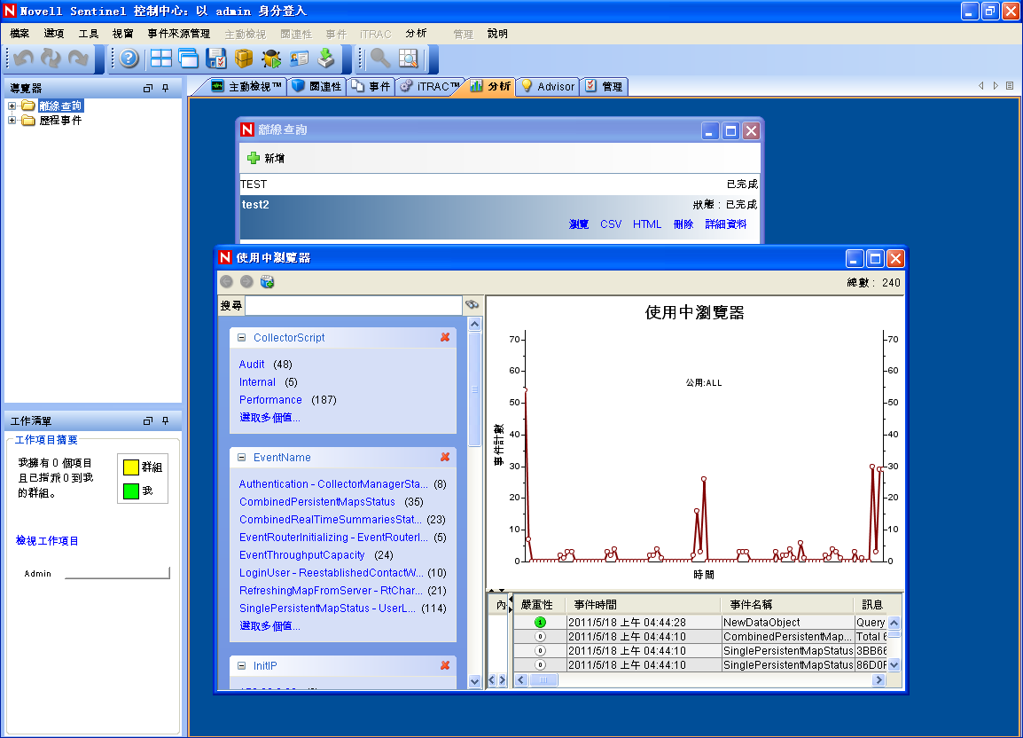 按一下以檢視「使用中瀏覽器」視窗中的事件清單和相關詳細資料。