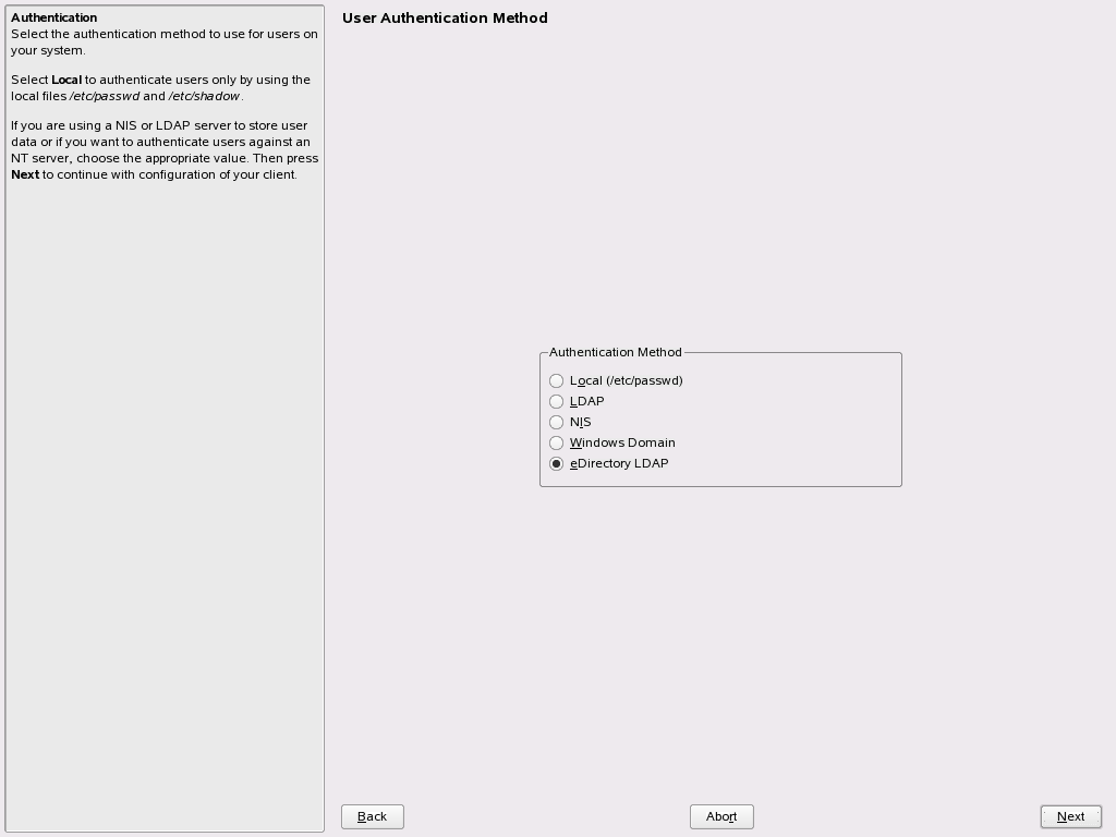 如需更多資訊,請參閱《Novell Linux 使用者管理技術指南》中的〈了解 eDirectory 物件與 Linux〉。