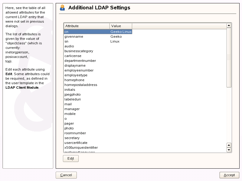 進入標籤,選取 LDAP 插件,然後按一下,即可設定指定給新使用者的其他 LDAP 屬性 (請參閱 圖 35-6)。