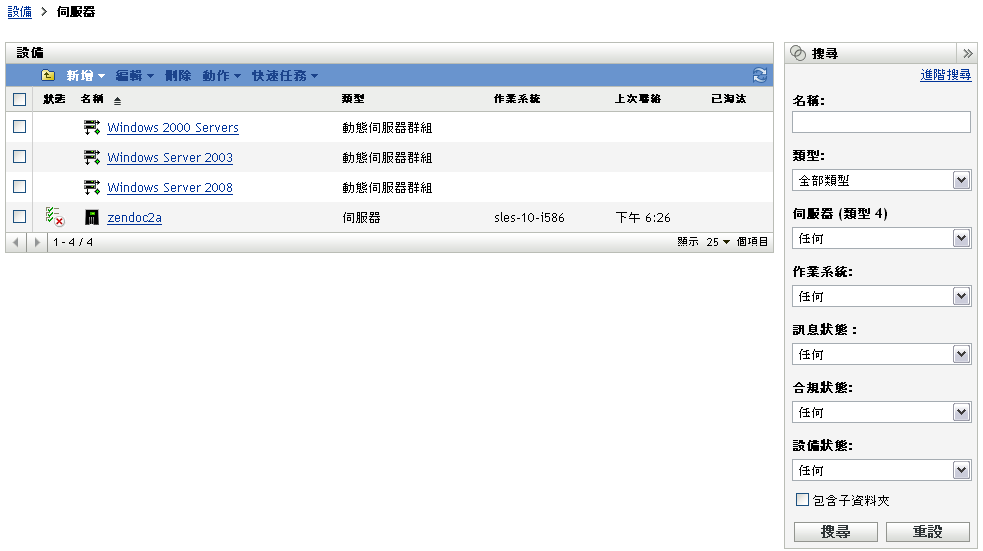 圖 6-1 受管理設備頁面 > 伺服器資料夾