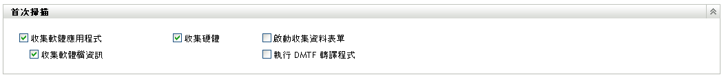 收集軟體應用程式: 若要掃描軟體應用程式,請選取此選項。預設會選取此設定。