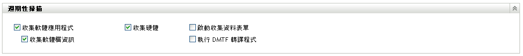 收集硬體: 若要掃描硬體資料,請選取此選項。預設會選取此設定。